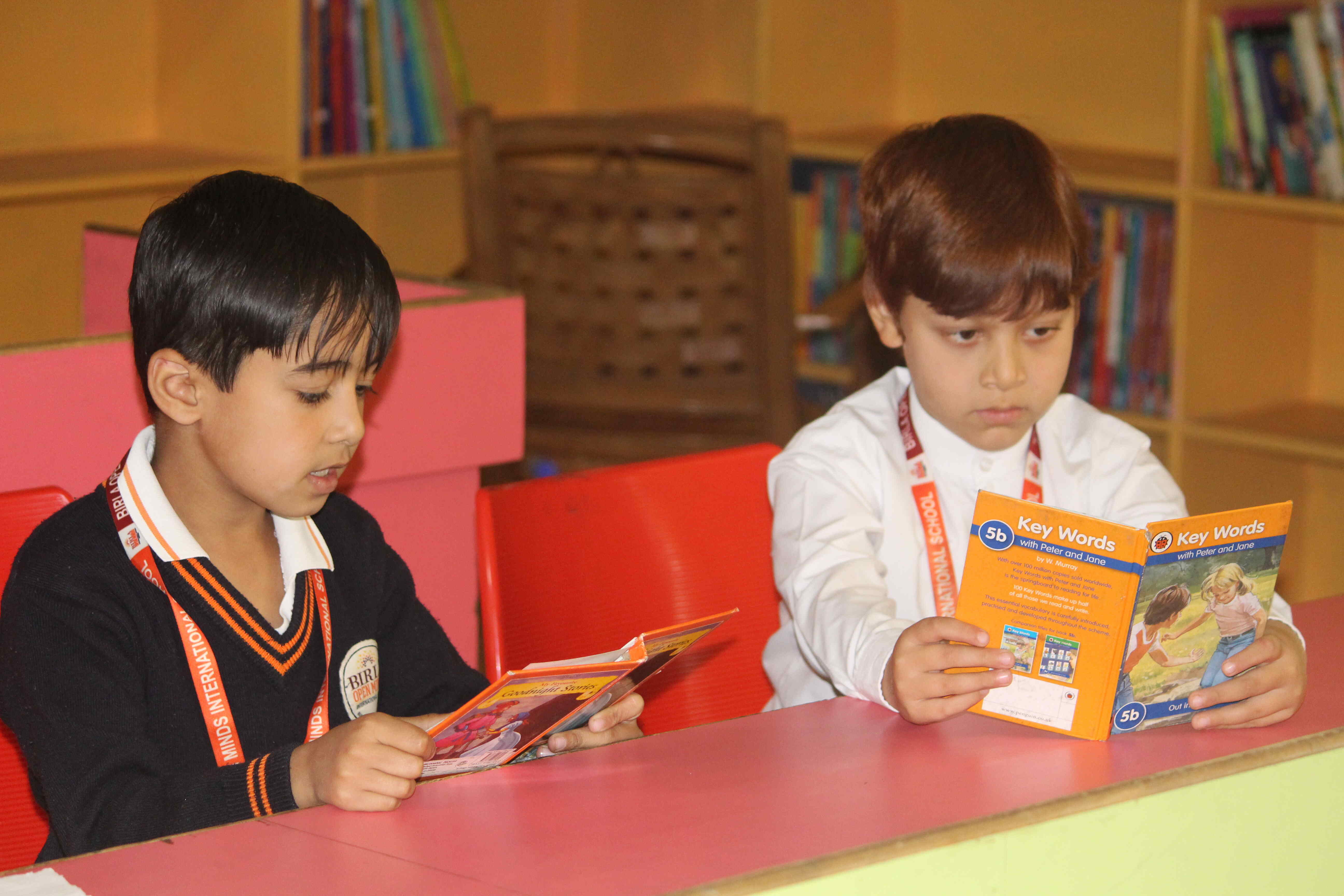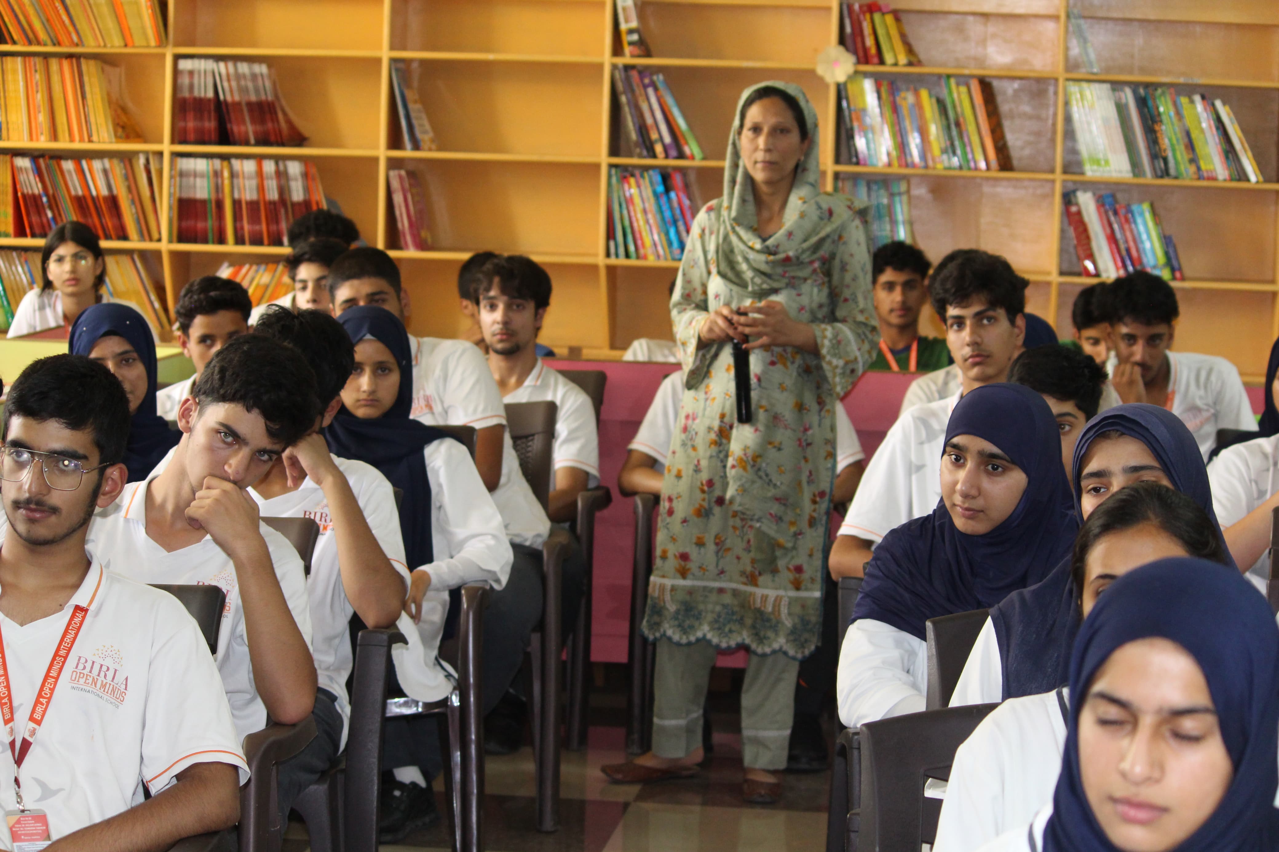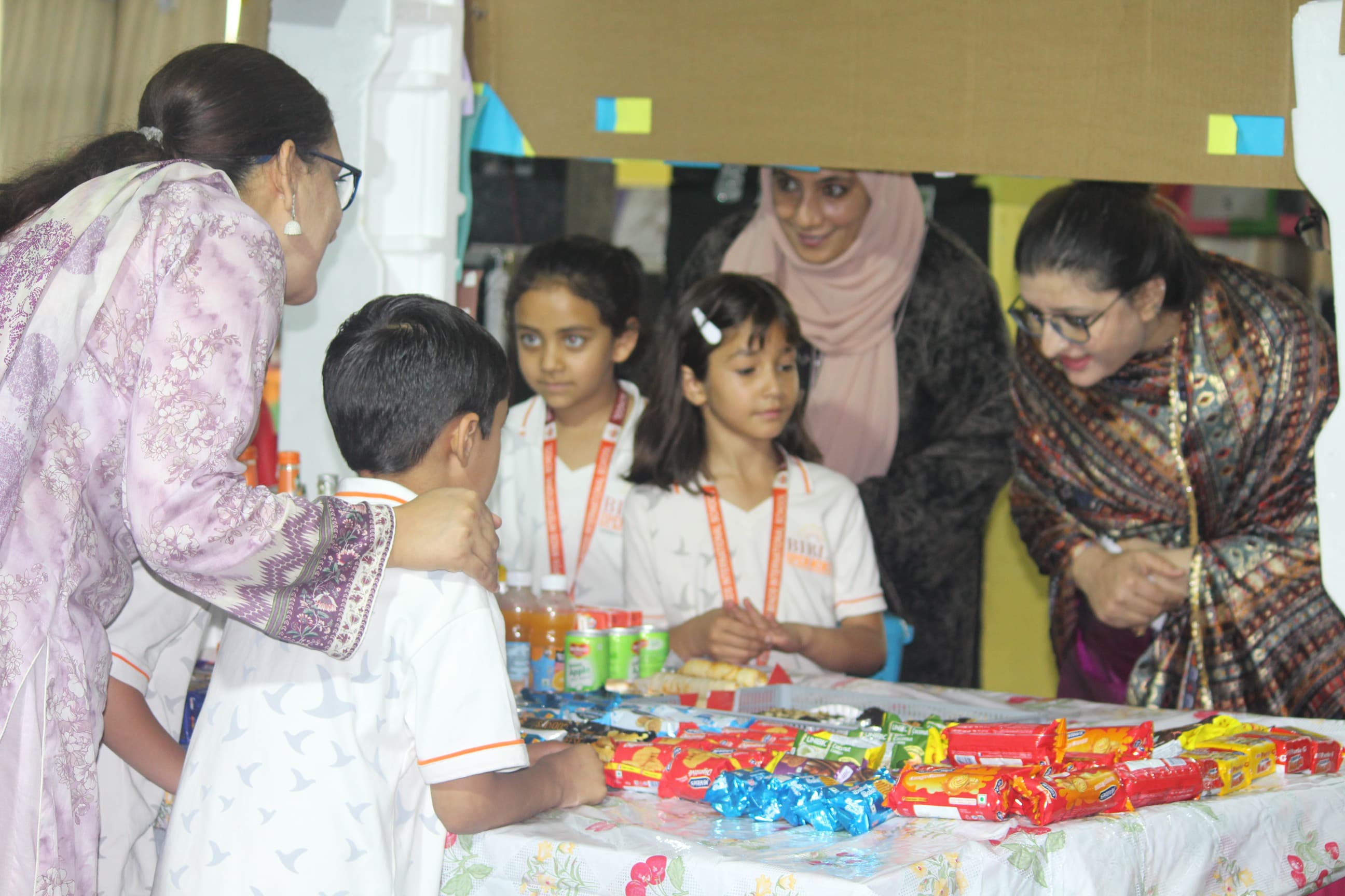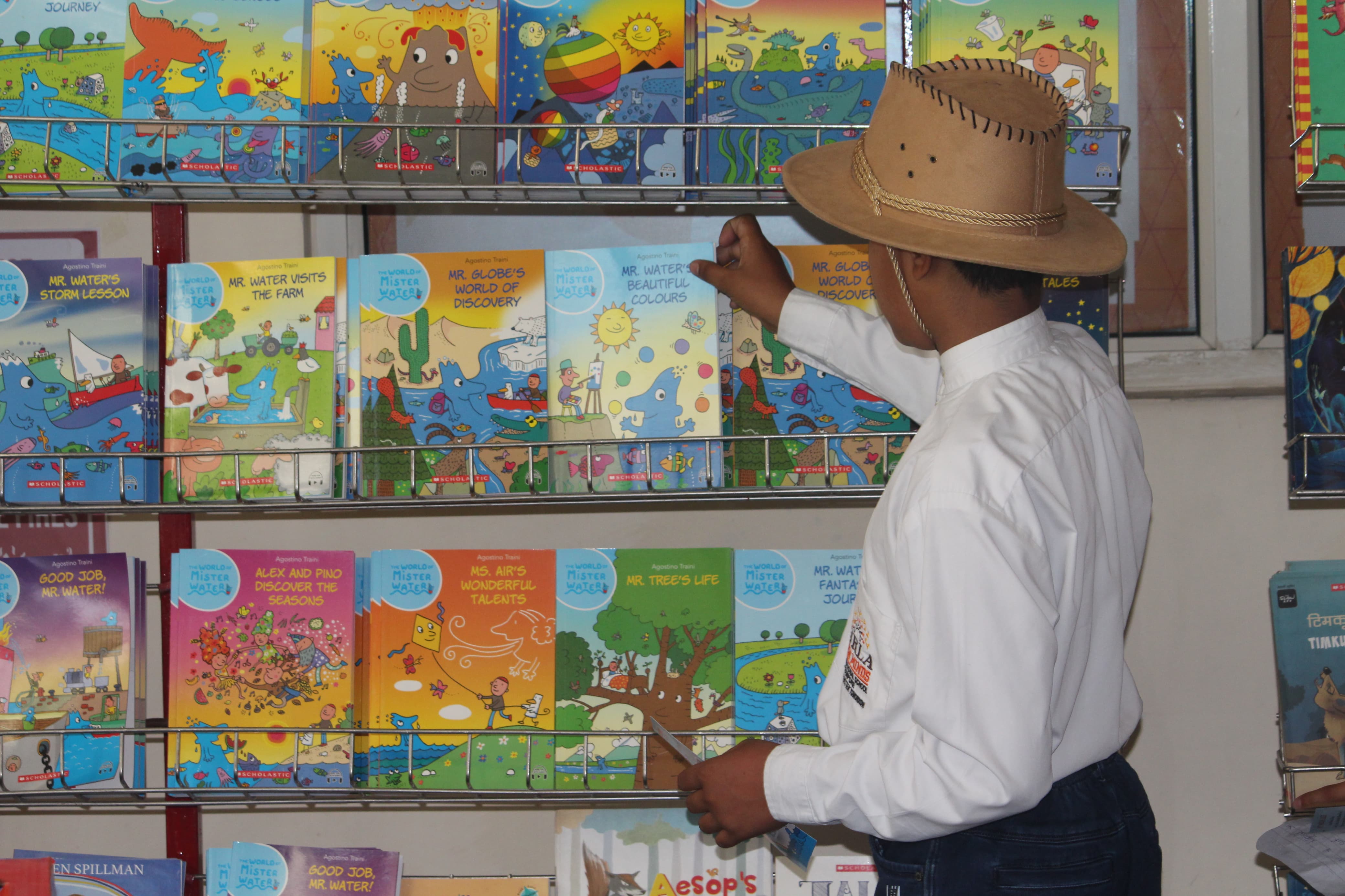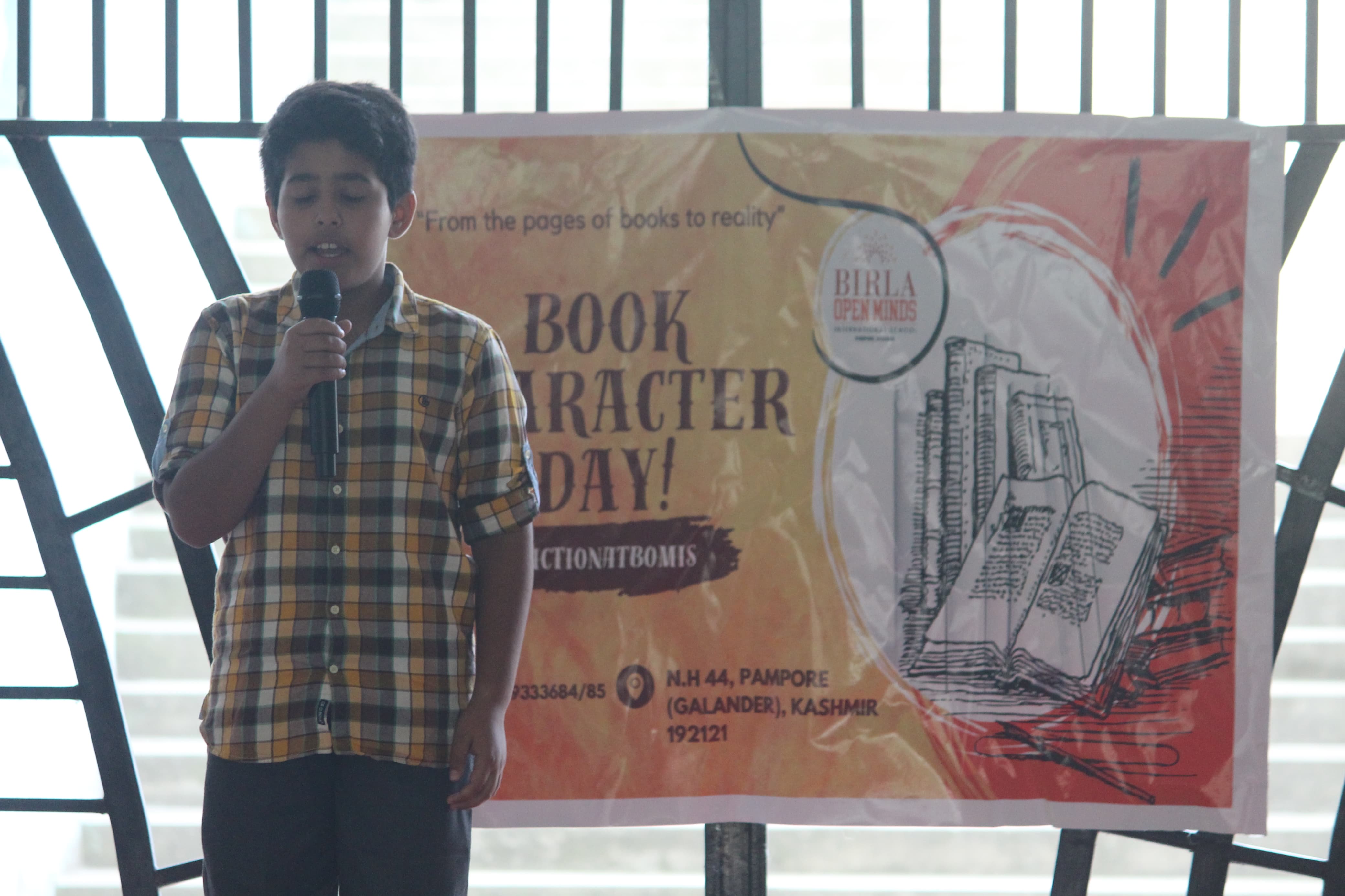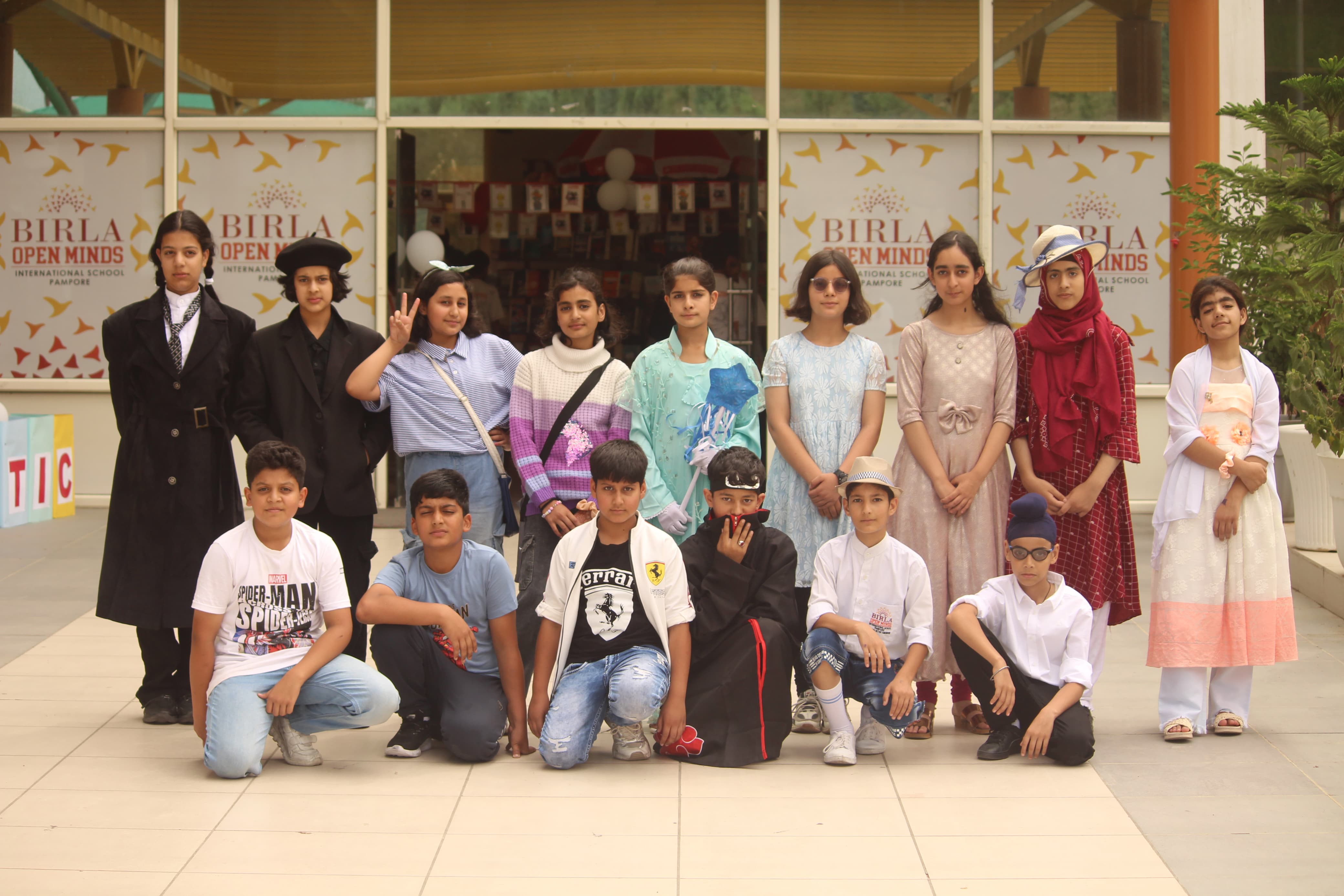 BOMIS students eagerly browsing through a diverse collection of books at the school book fair