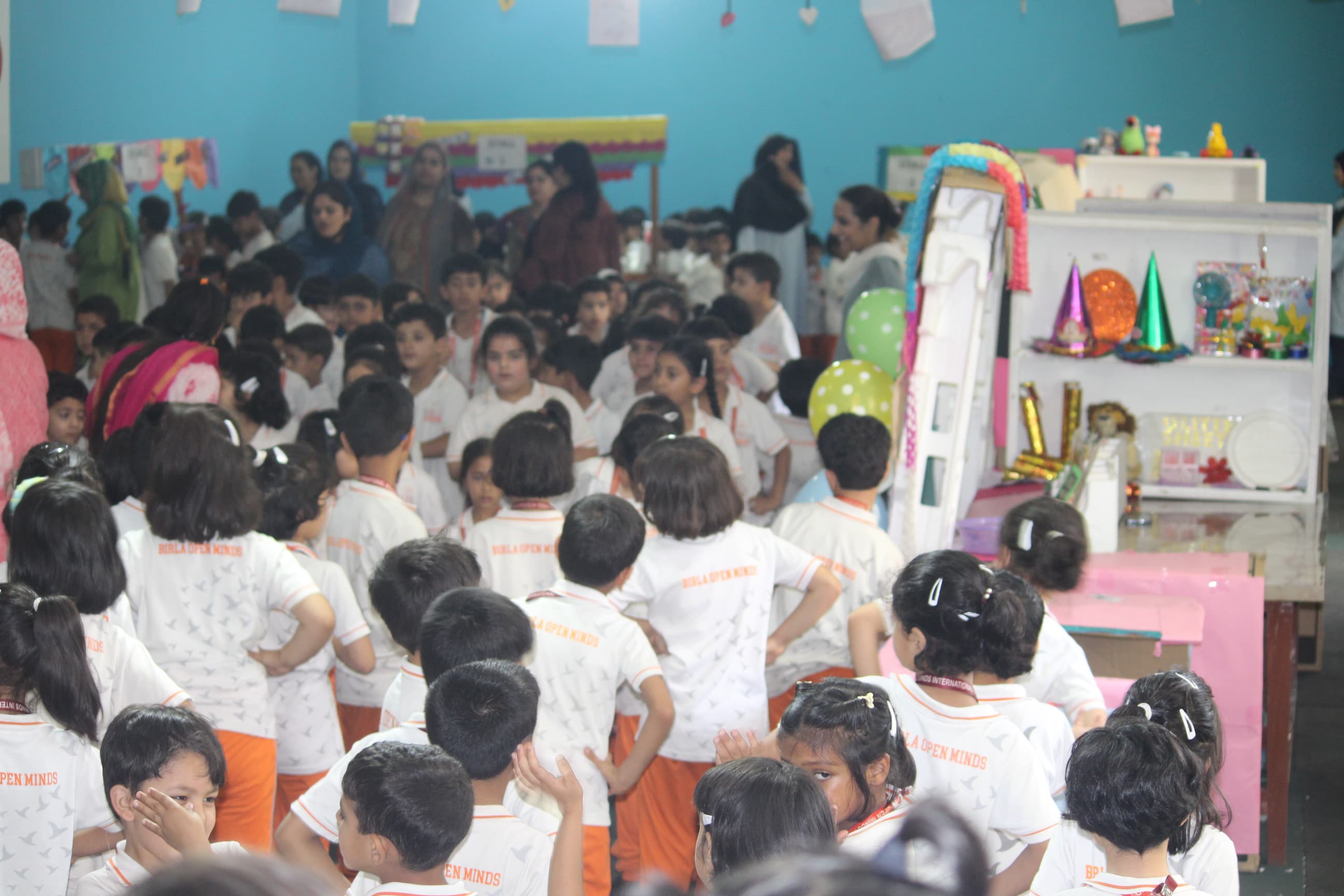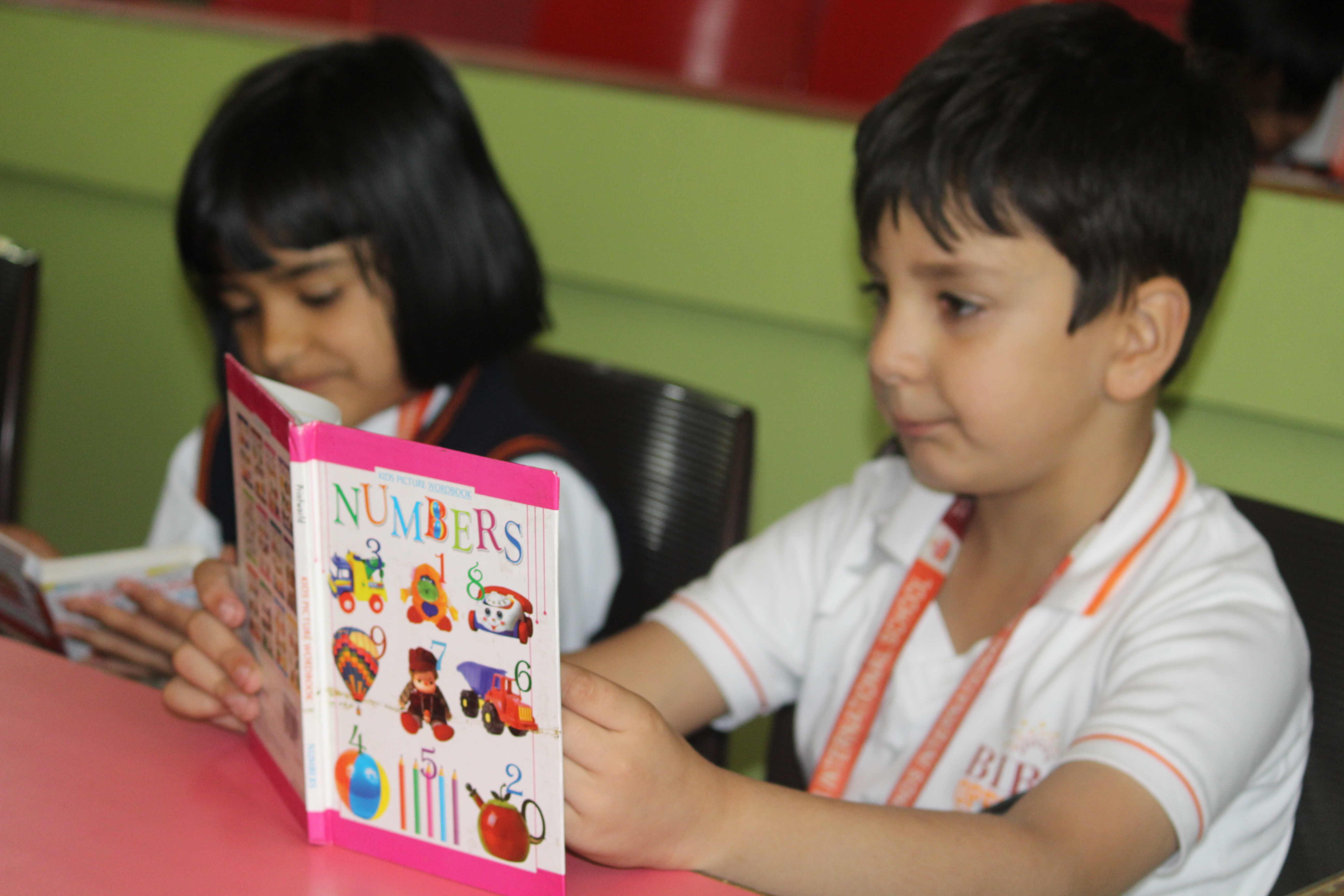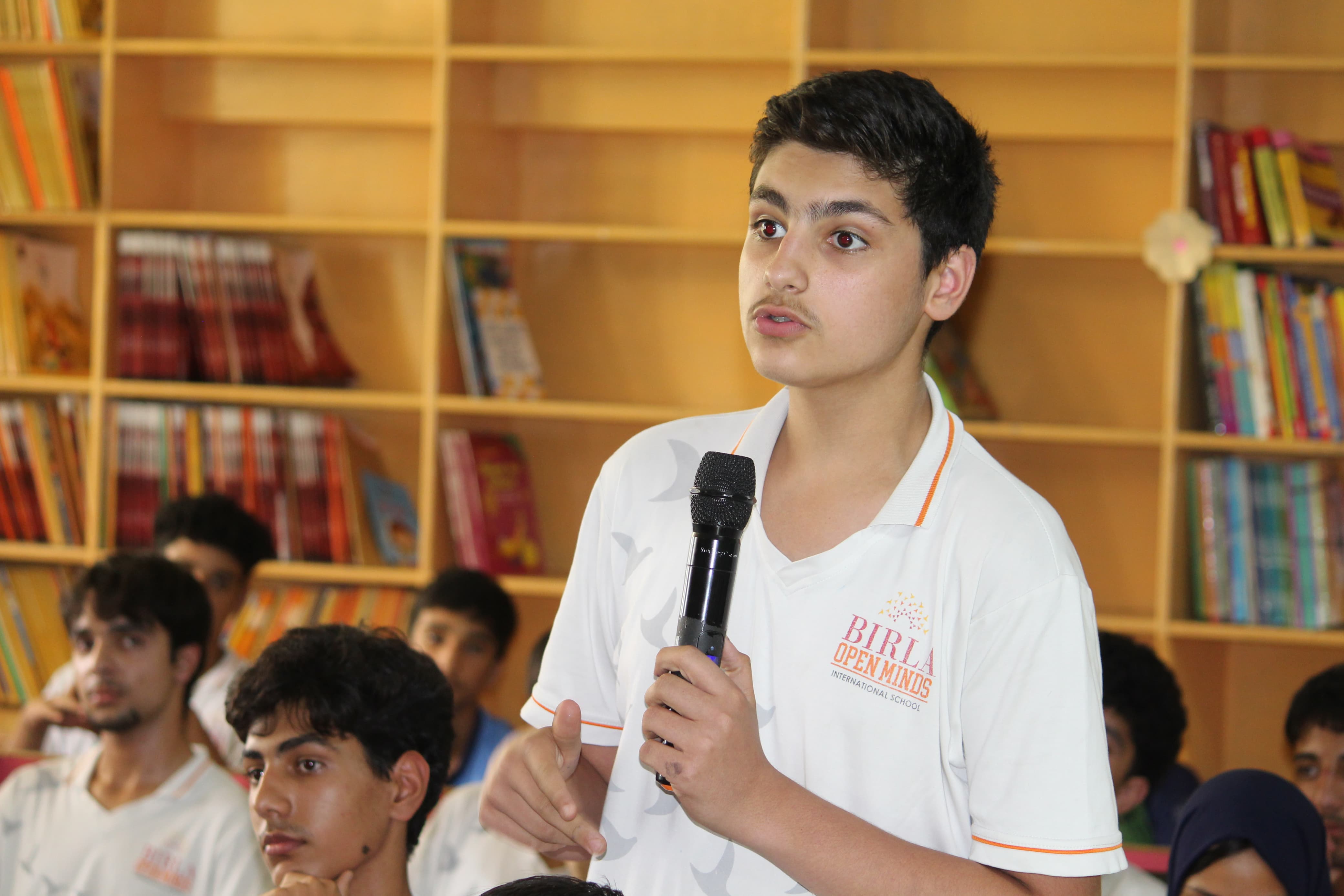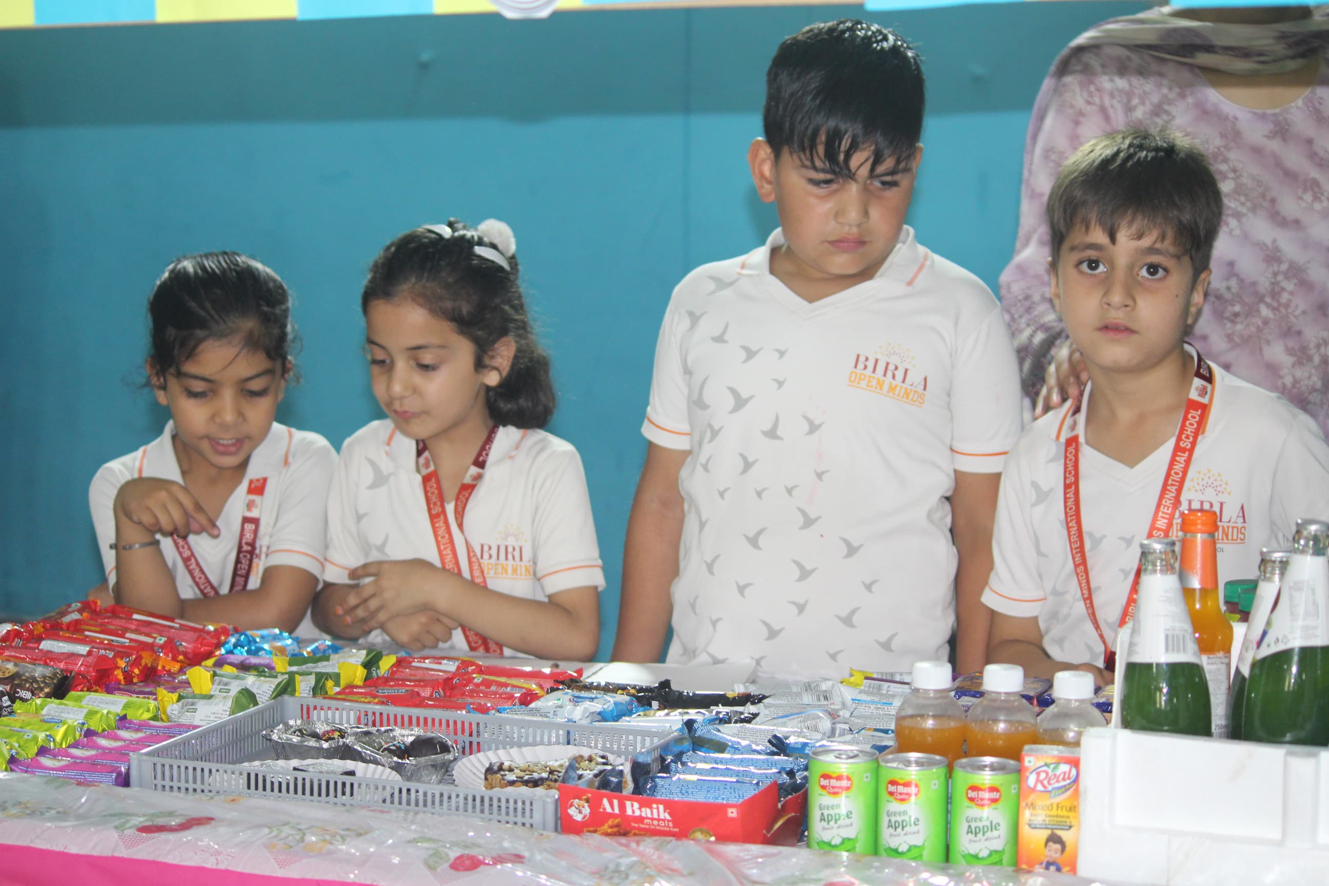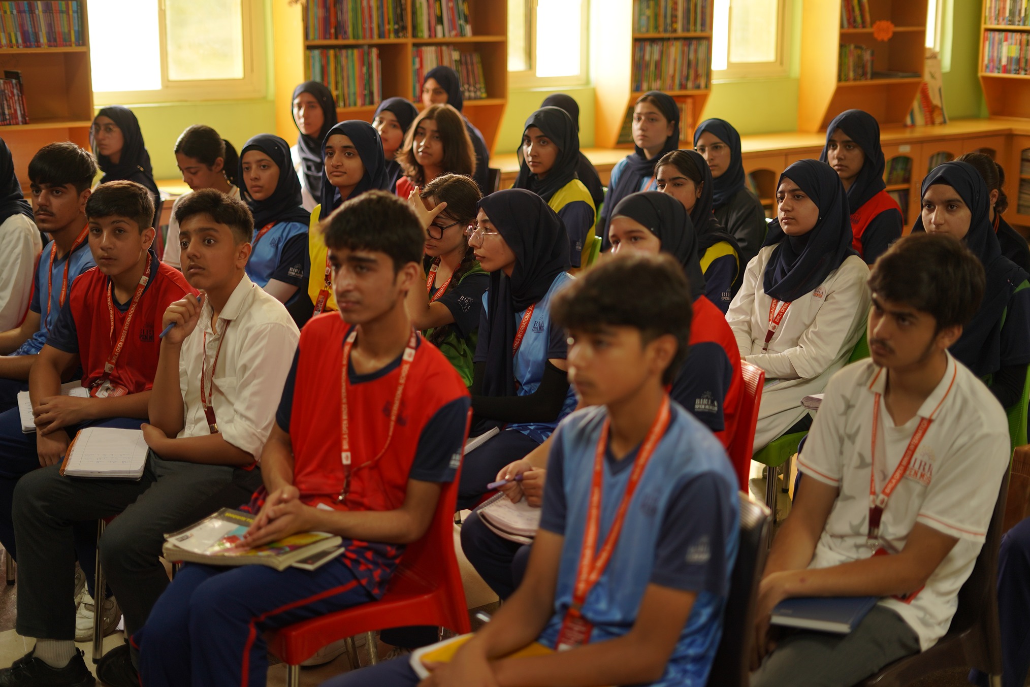 BOMIS students eagerly browsing through a diverse collection of books at the school book fair