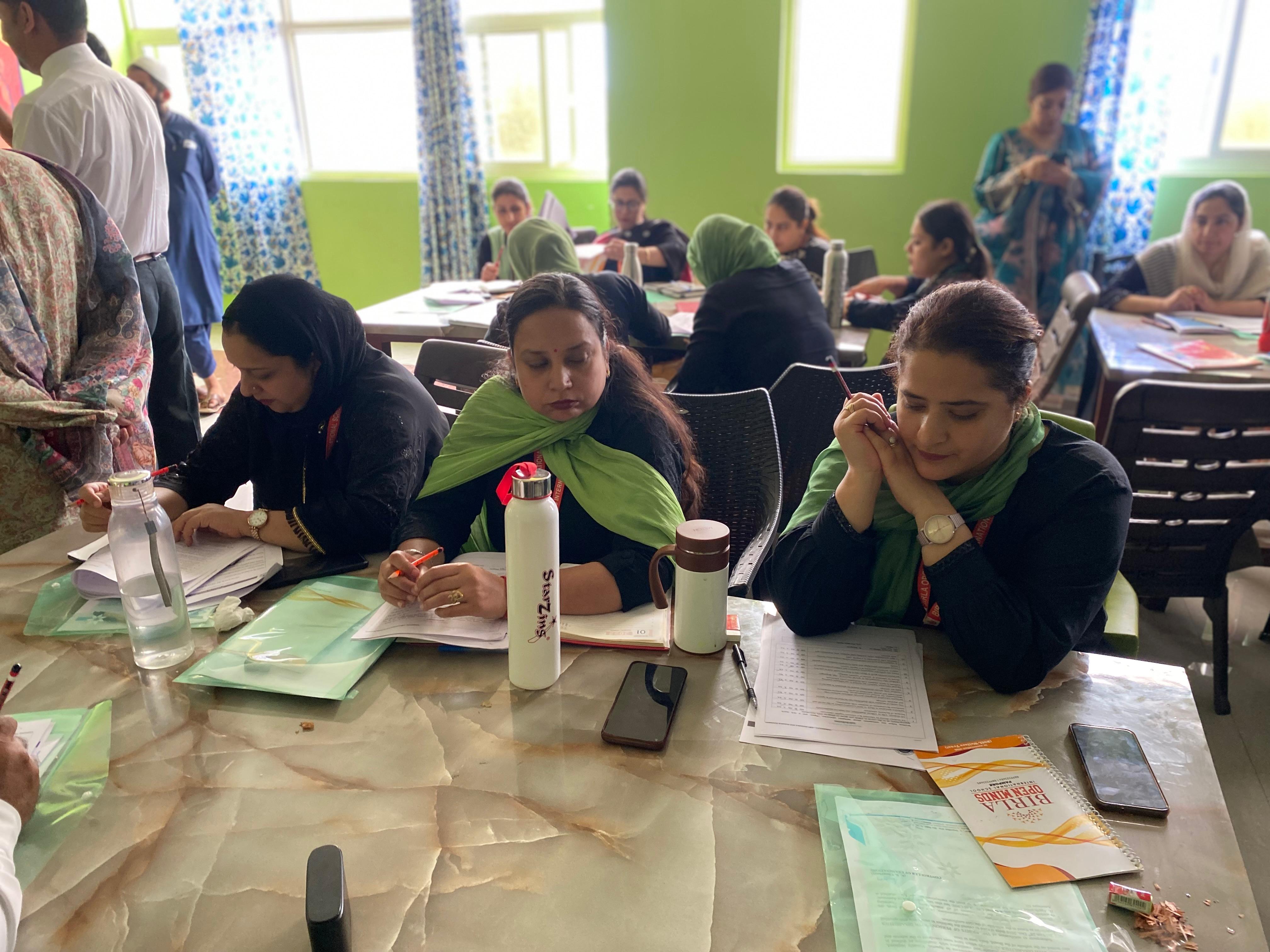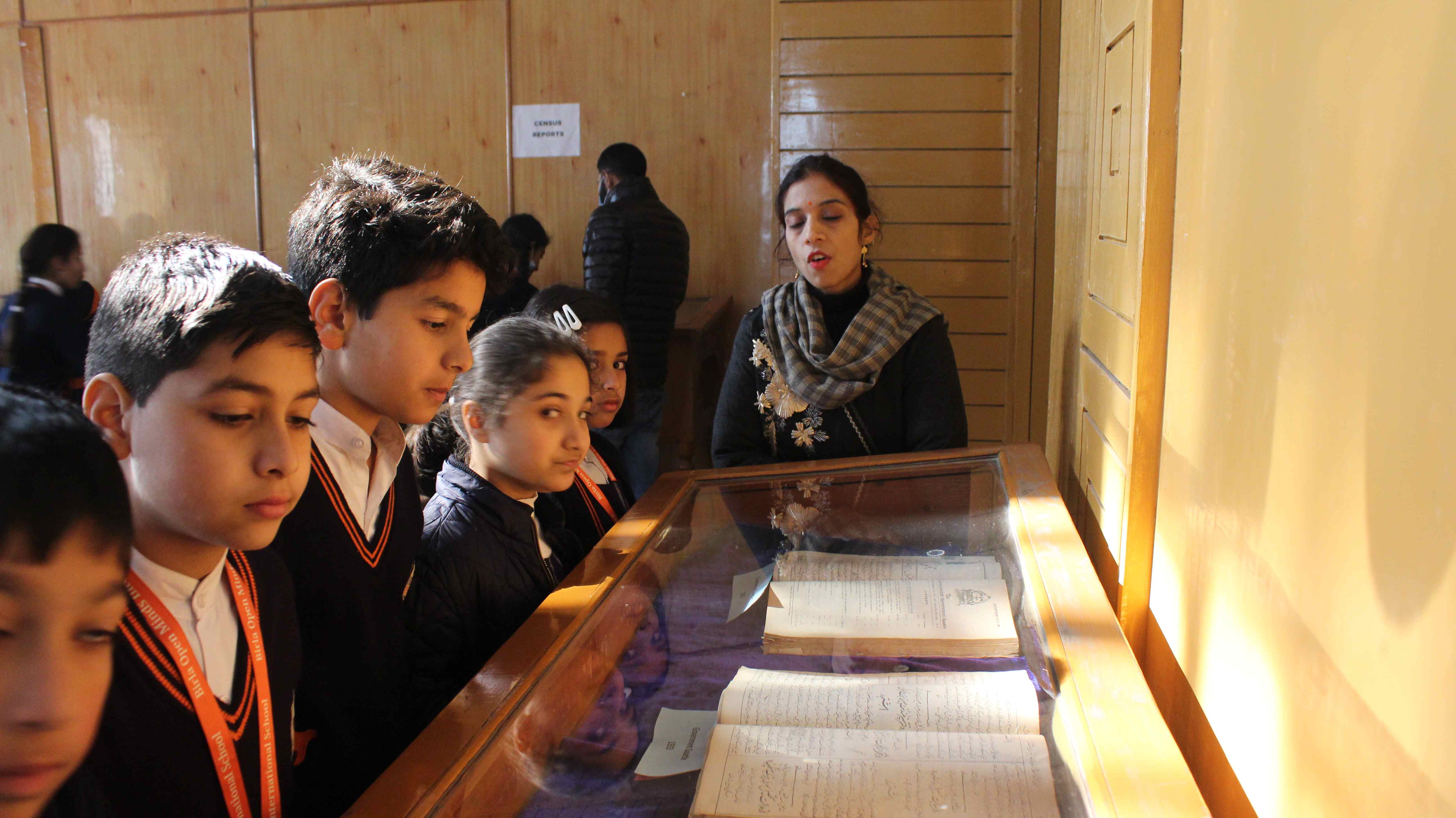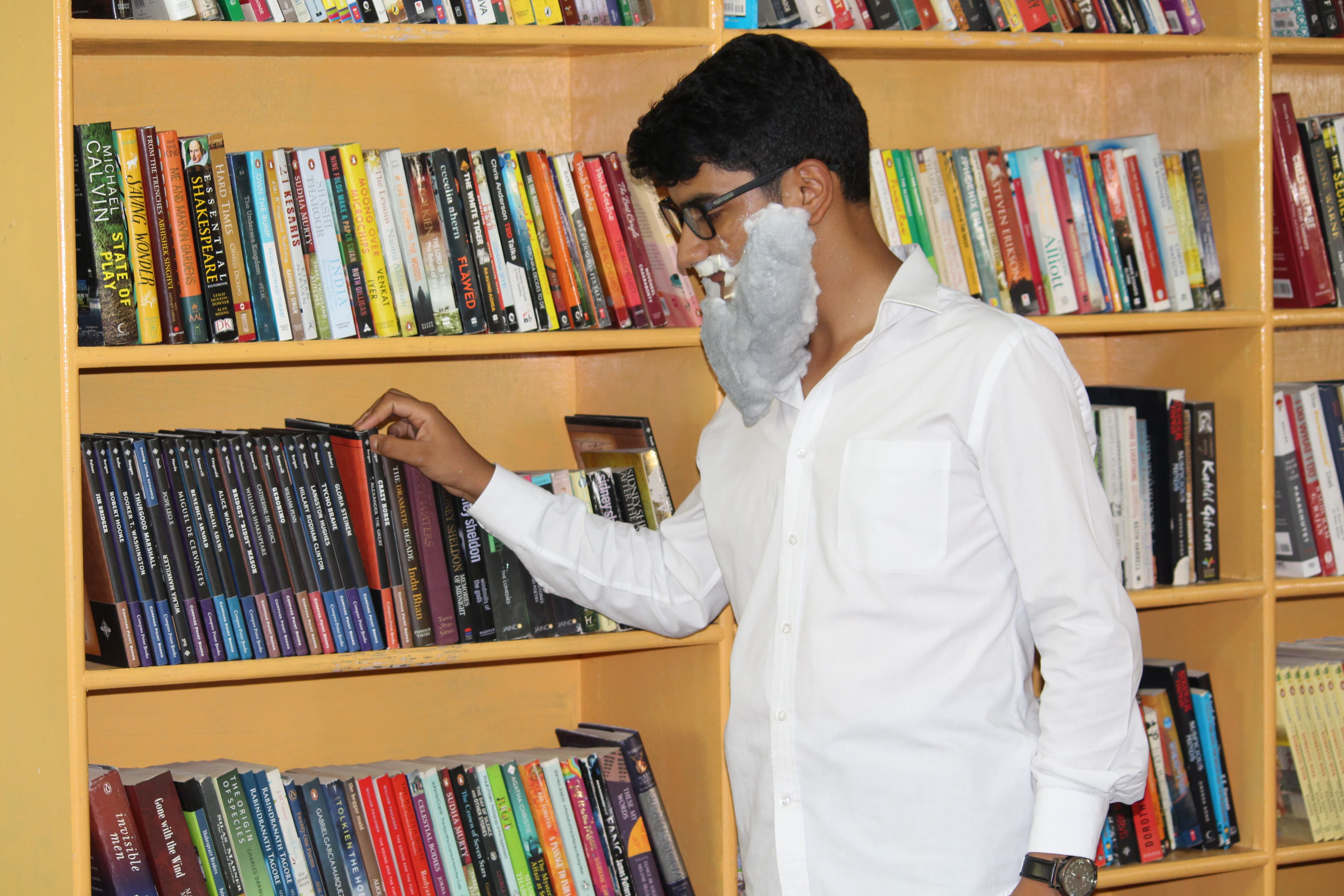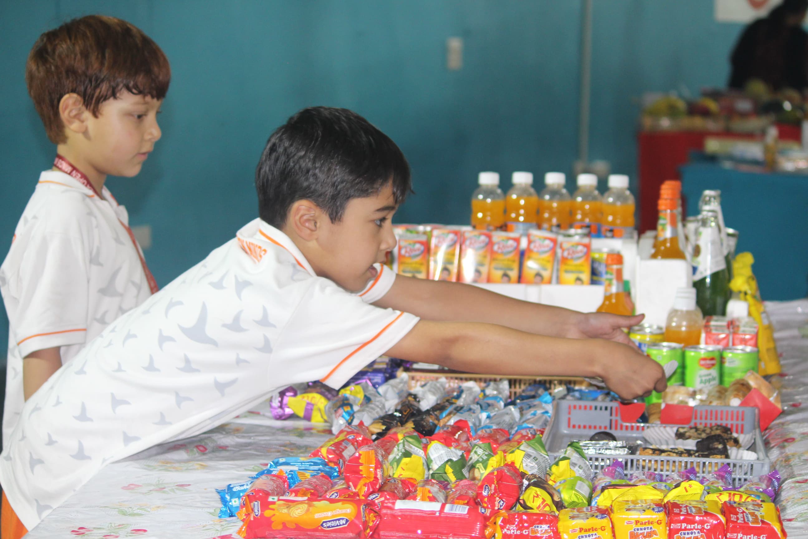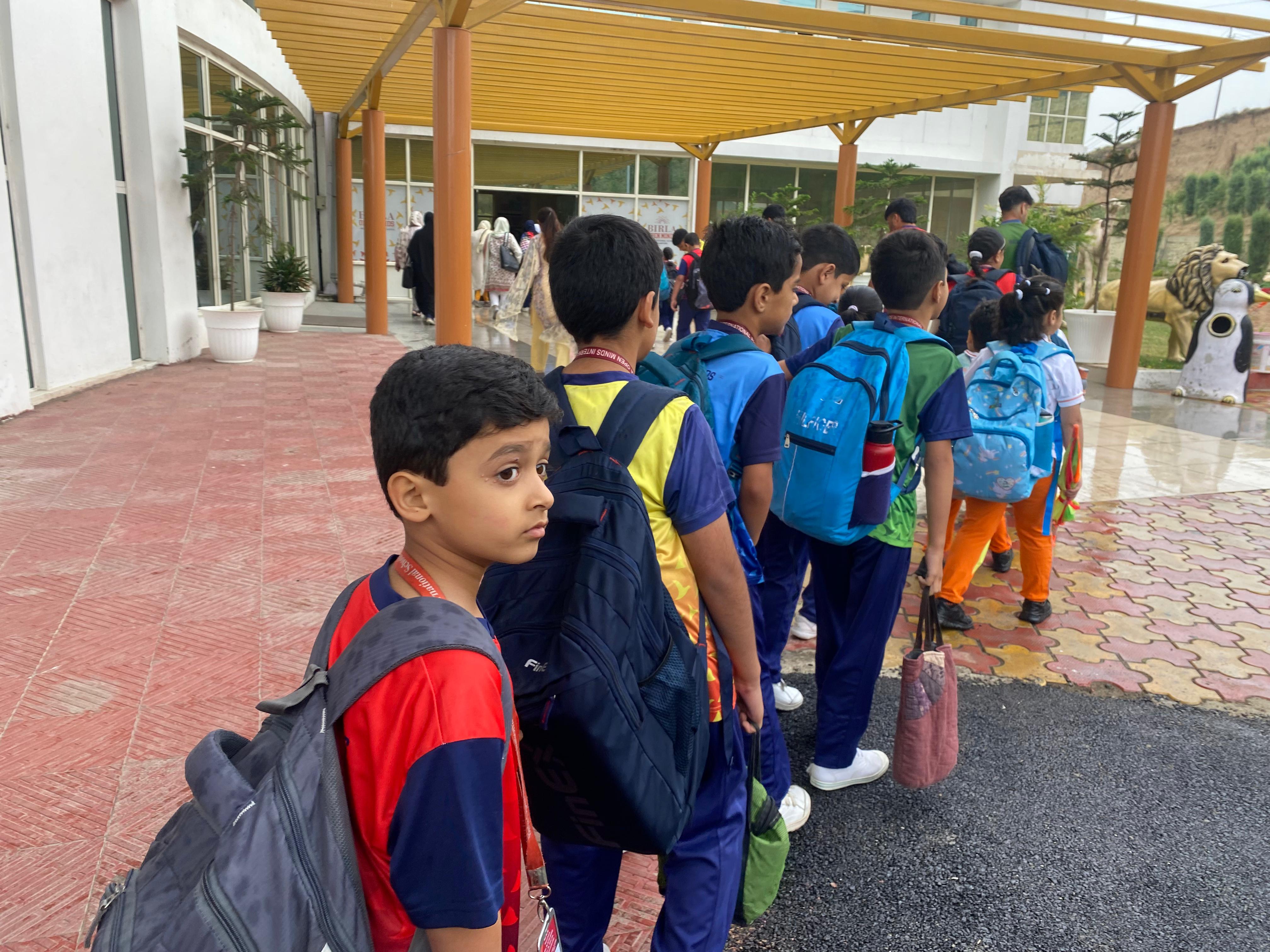 BOMIS students eagerly browsing through a diverse collection of books at the school book fair