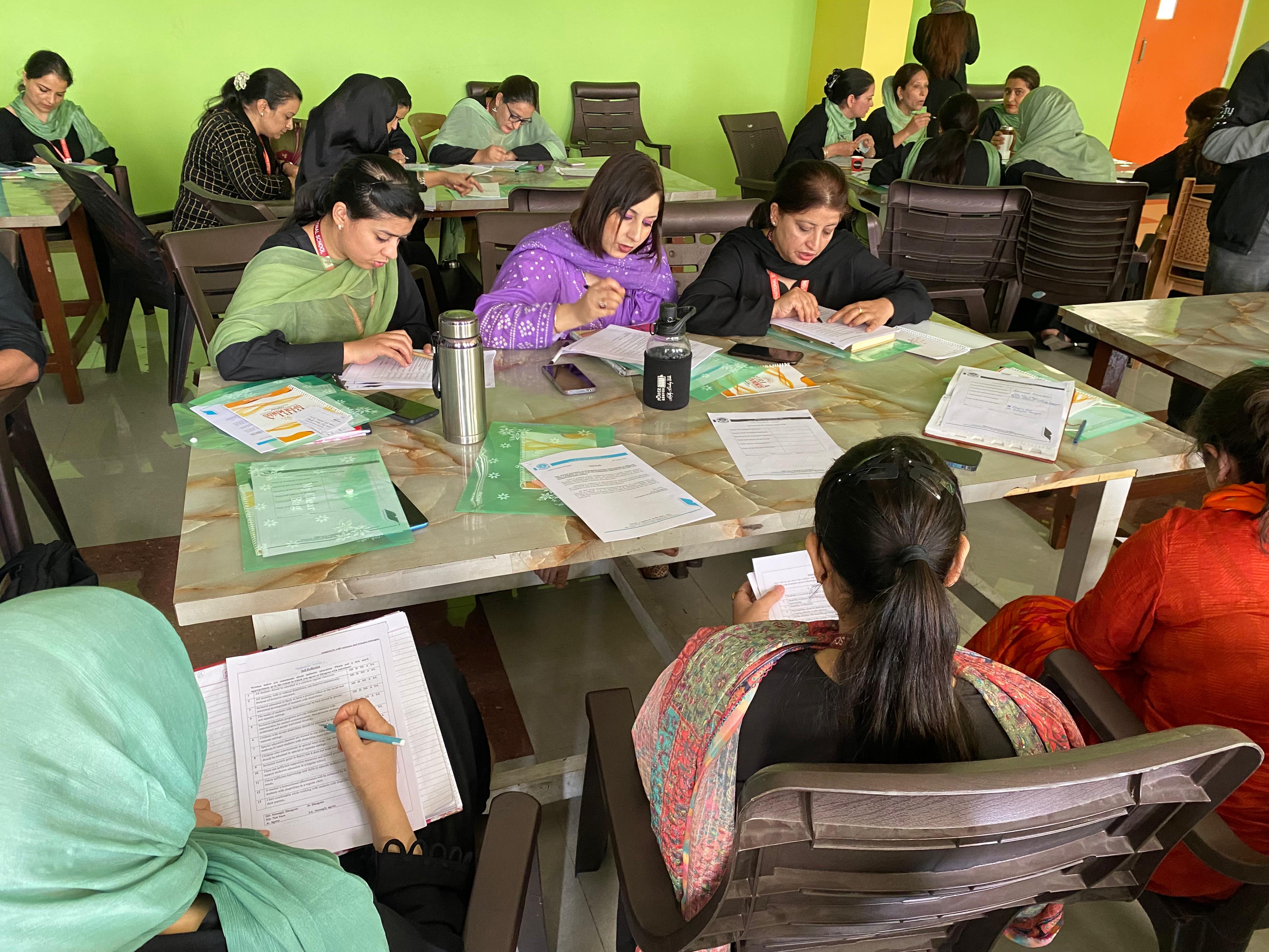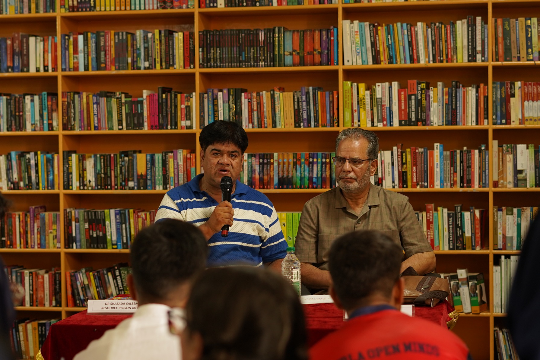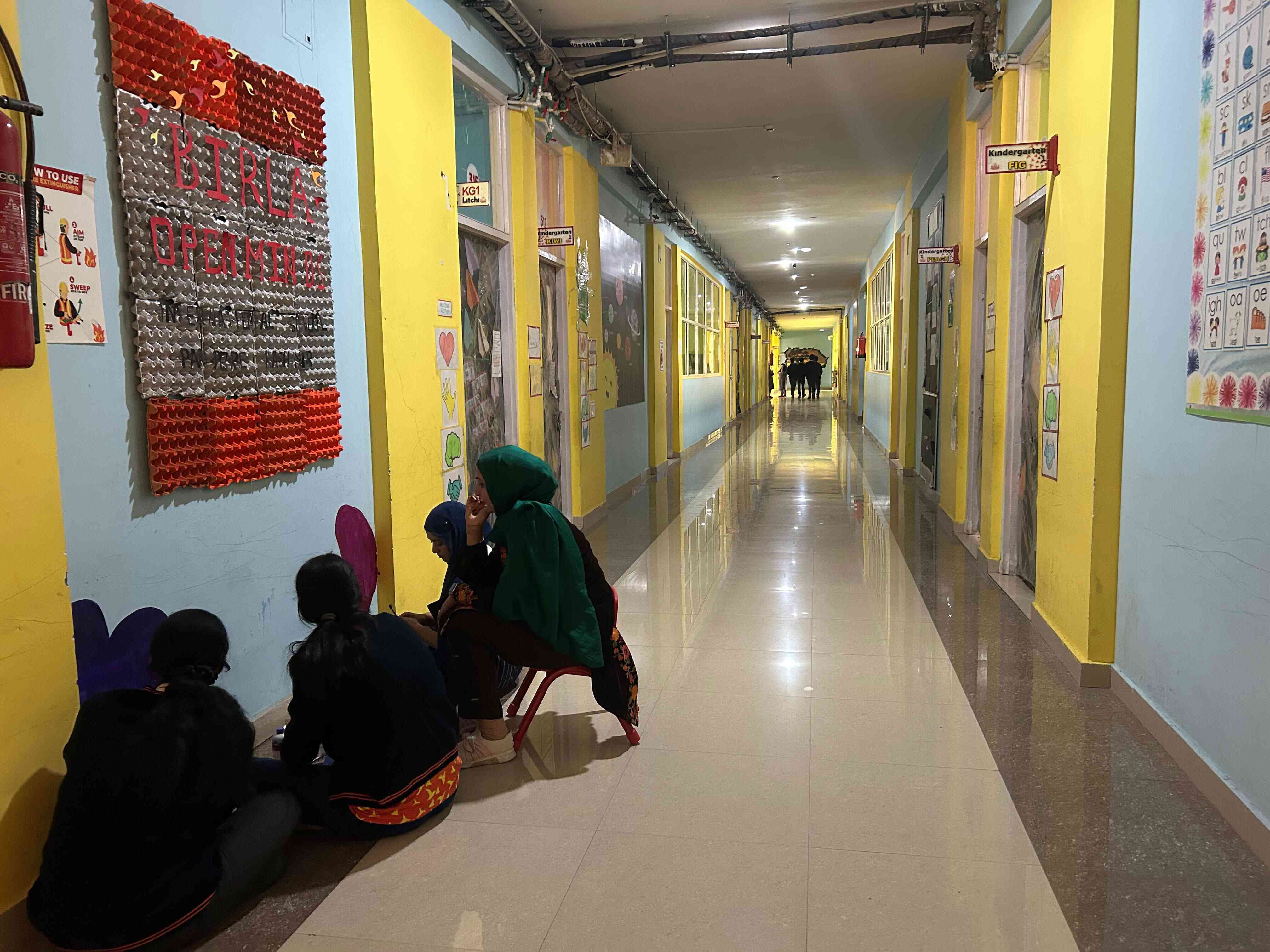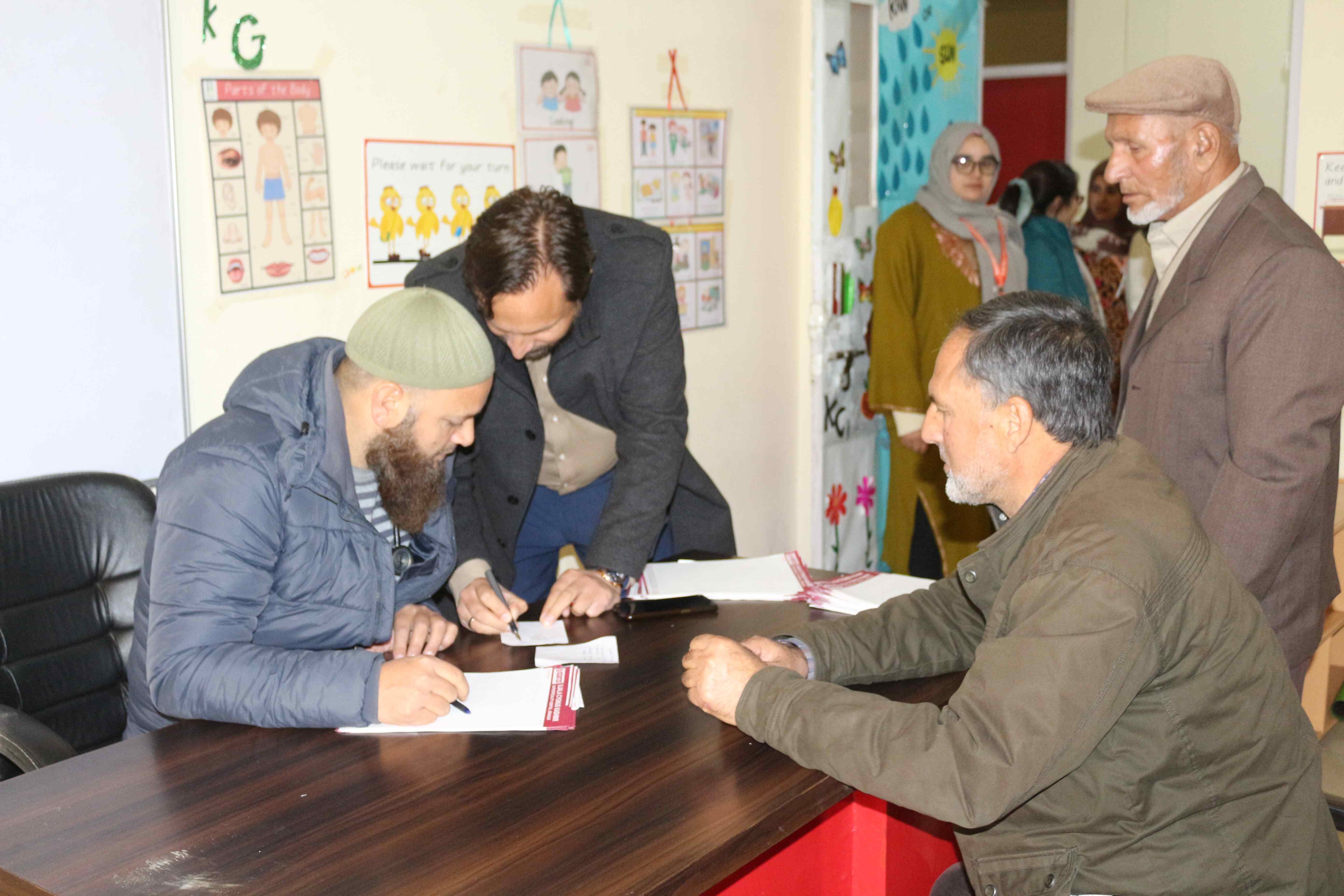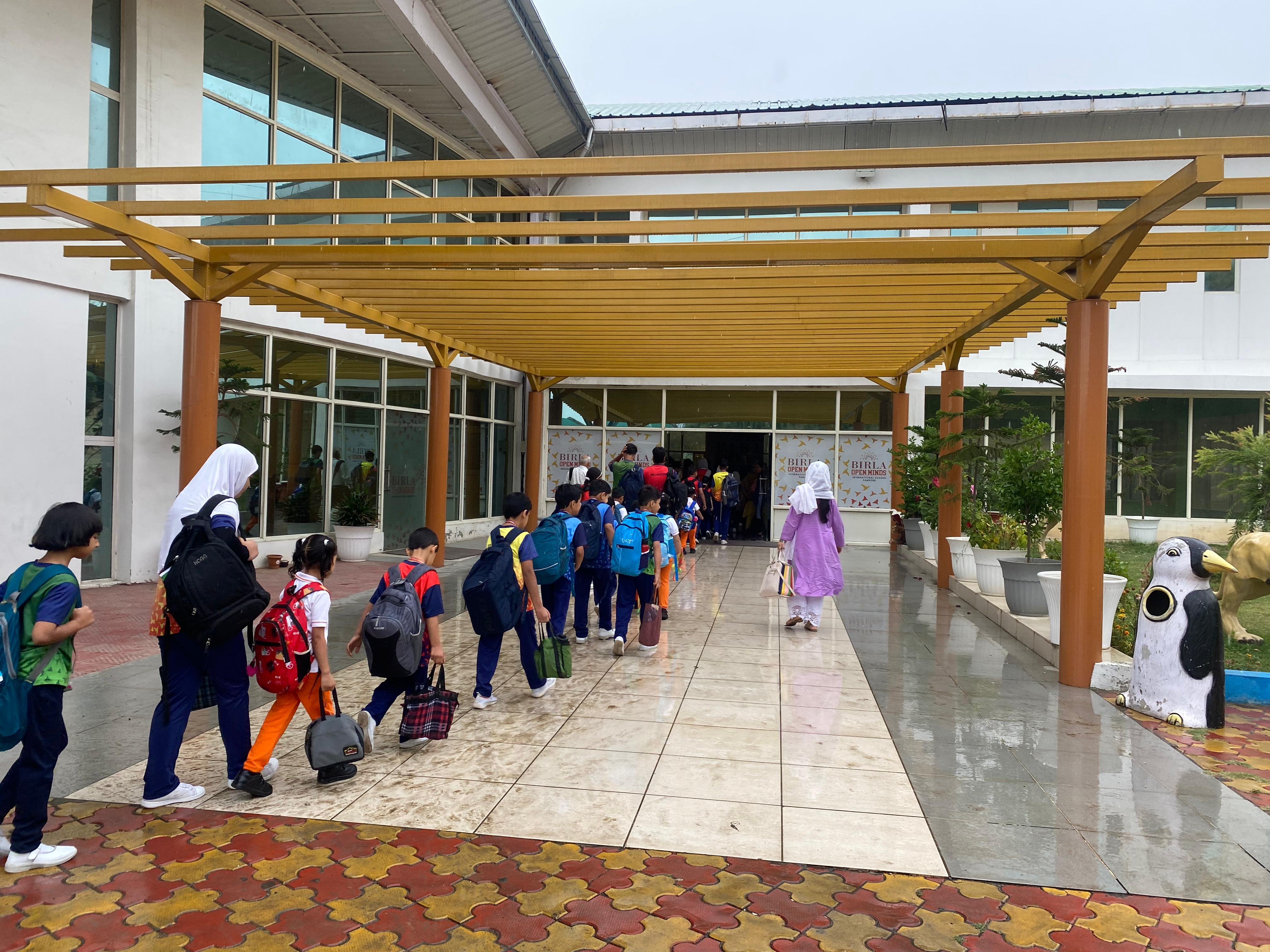 BOMIS students eagerly browsing through a diverse collection of books at the school book fair
