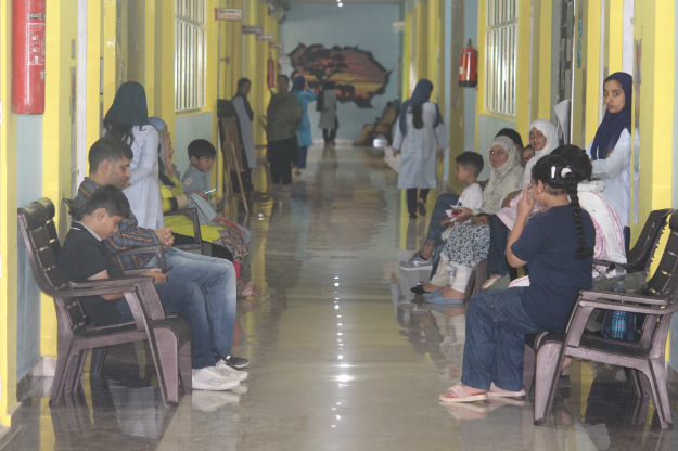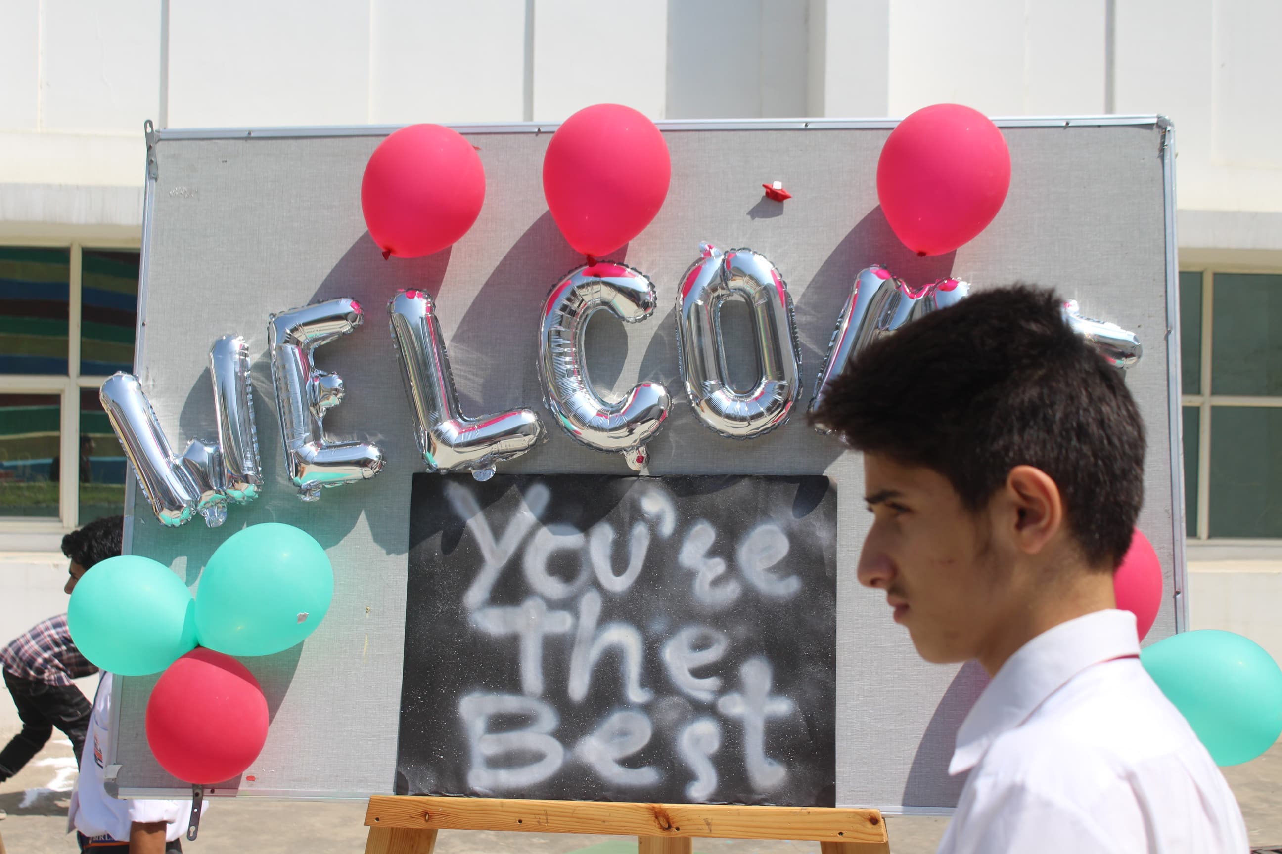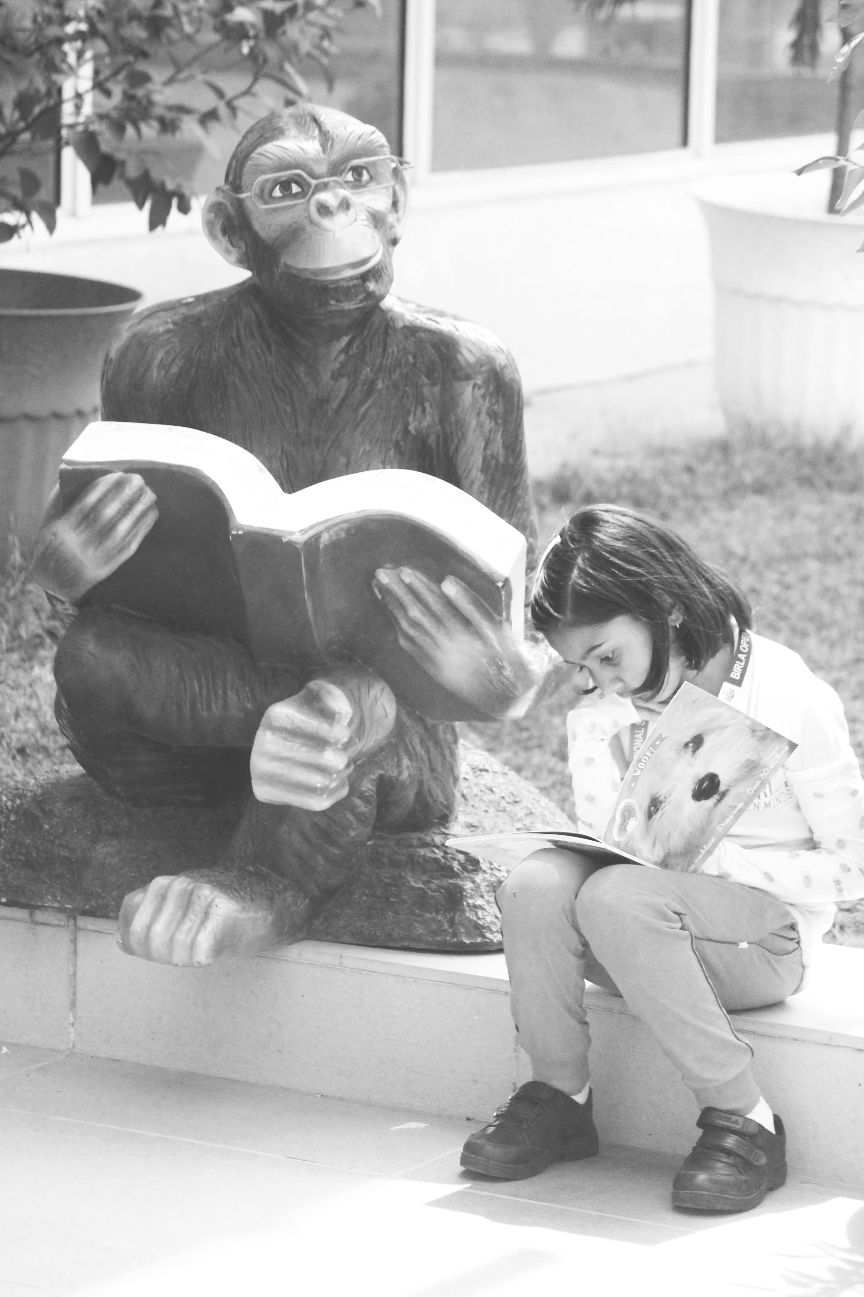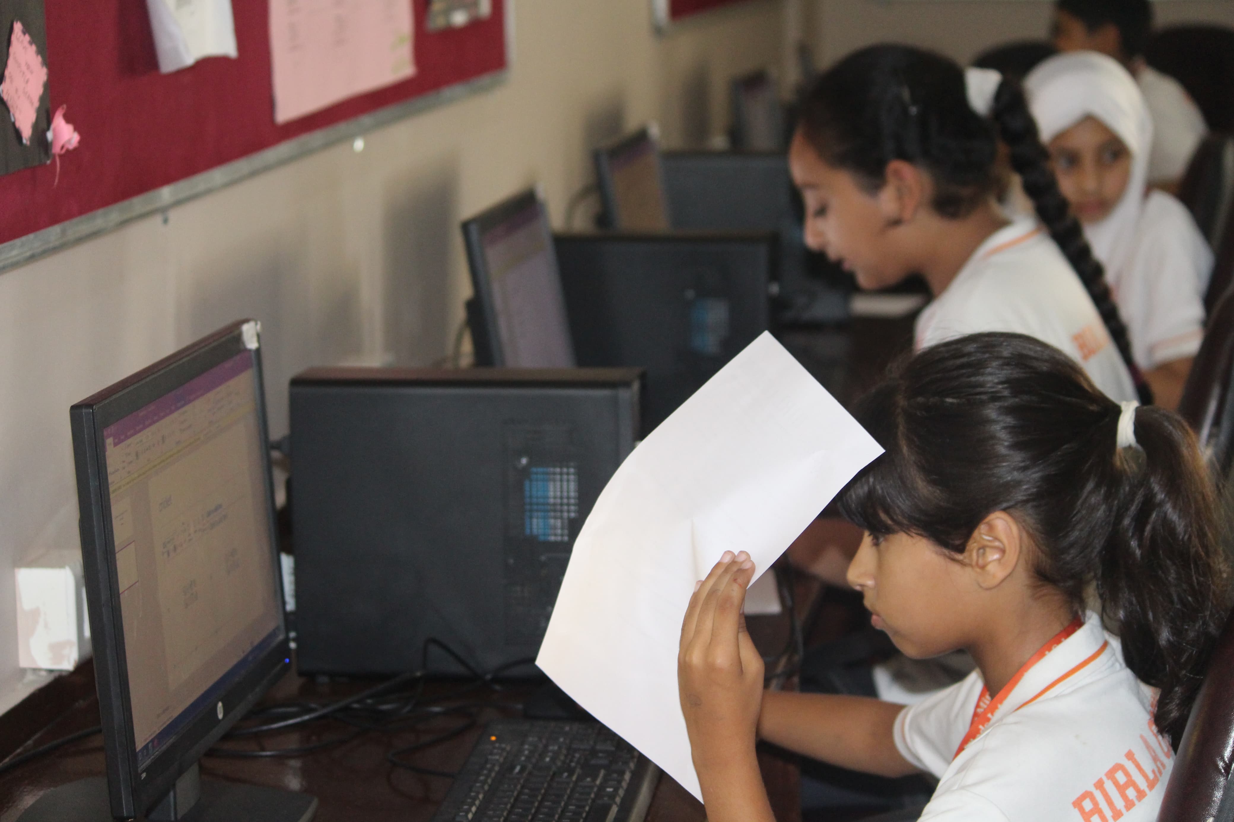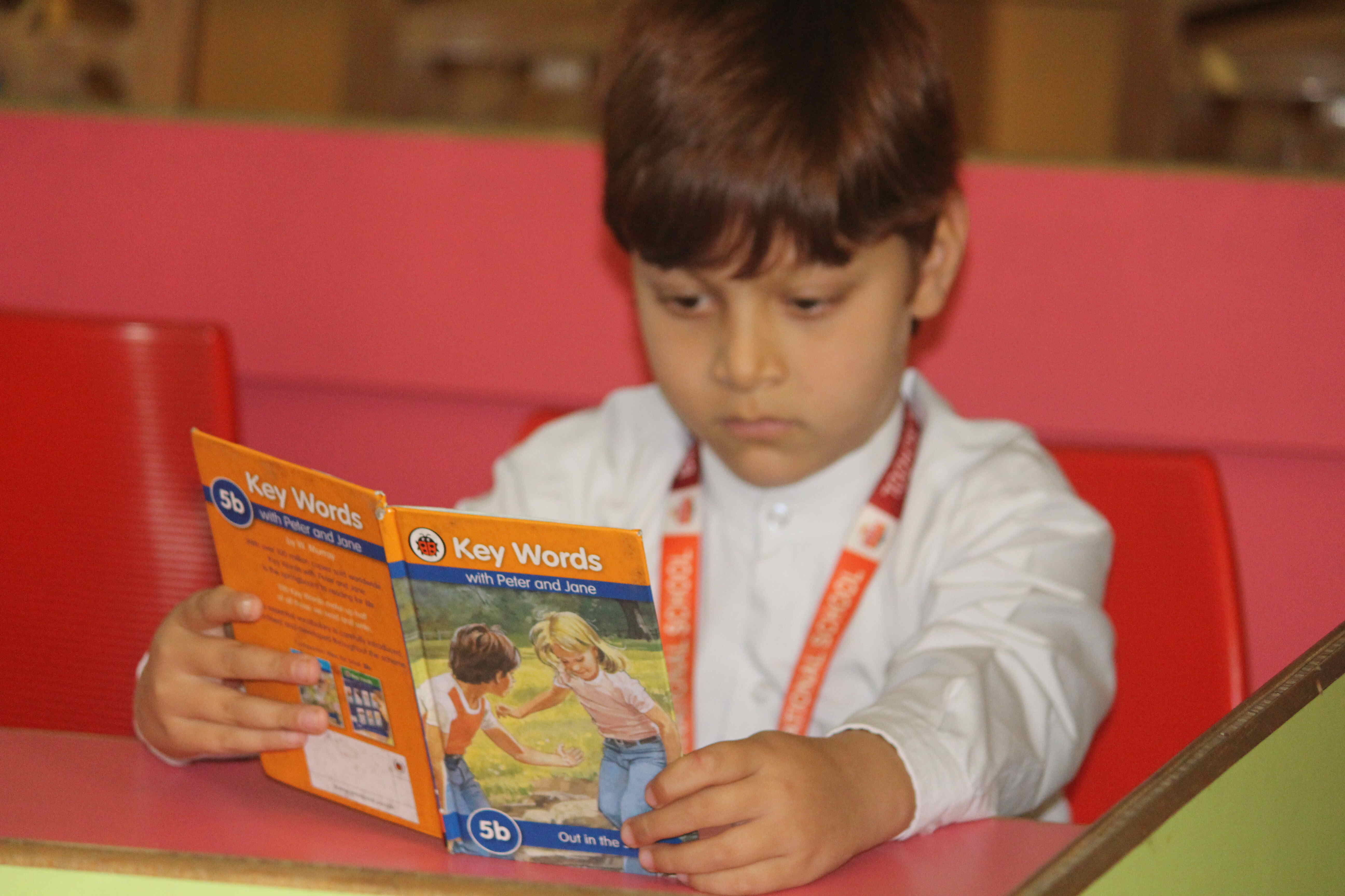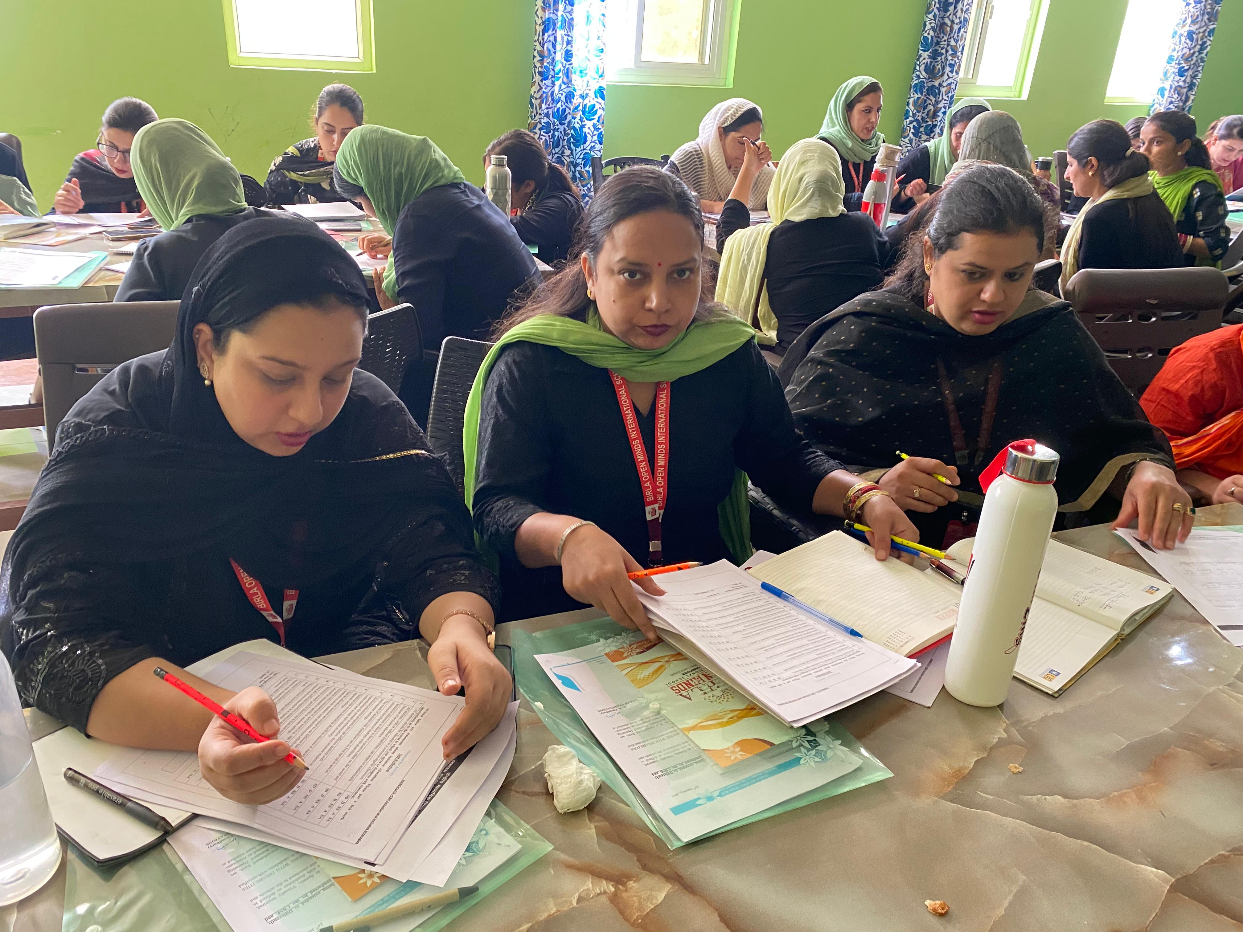 BOMIS students eagerly browsing through a diverse collection of books at the school book fair